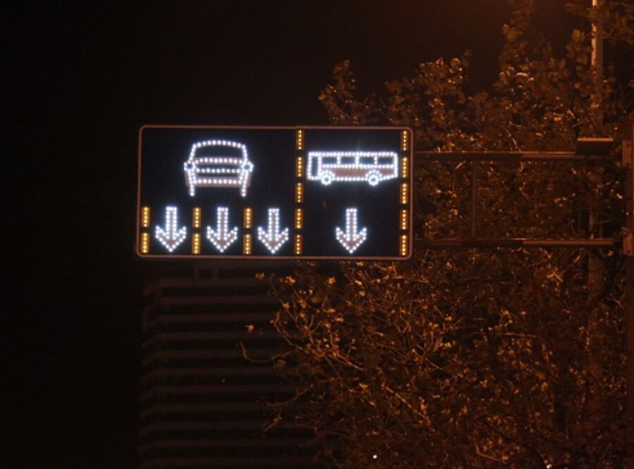 主動發光標志因其獨特的主動發光功能,不需要借助外部光源照射,自身可以主動發光,能清晰地顯示標志交通語言信息,有效規避城市遠光燈誘發的事故隱患;同時,主動發光標志,在大角度視認、惡劣天氣(雨、霧、霾、冰凝等)、惡劣環境(逆光、小半徑彎道、畸形交叉口等)等交通條件下,仍具備獨特的視認效果,能彌補普通逆反射標志在上述條件下的功能不足現象。小型主動發光標志,如禁令標志、指示標志、警告標志等,可通過設置閃爍模式,能有效提高動態警示效果,加強視認易捕捉性,宣誓管理意志;如線形誘導標志(俗稱:“彎道誘導標志”),可通過設置總控模式,讓一組彎道標志,按照“波浪追逐”或“同步閃爍”模式,加強彎道邊緣軌跡誘導警示。