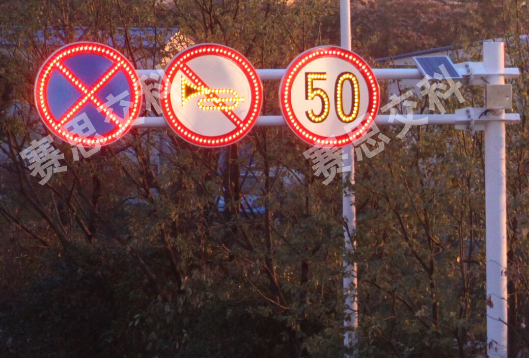 (一)LED點陣式主動發光標志。即在標志版面的文字、圖案、圖形的輪廓上外嵌LED發光管,通過光學測算,將點光源調制成視覺柔和的面光源發光形式,達到點陣型主動發光效果;其依據標準為國標《LED主動發光道路交通標志》(GB/T31446),另最早的公安部行標《太陽能道路交通標志》(GA/T580-2005)已經廢止。