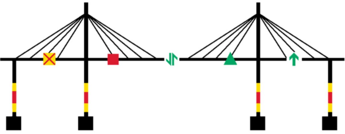 船舶在內河或海域中通行,在臨近跨河、跨海橋梁時,需要通過觀察橋梁上的助航標志,來判斷橋梁下方的通行航道定位,及時修正航行線路,所以設置于橋梁上的助航標志,對船舶準確、及時地把握前方橋梁信息顯得尤其重要。橋梁航道助航標志通常采用逆反射材料,船舶臨近時需要依賴射燈照射才能認知版面信息,在橋梁周圍光照環境不佳的夜晚或惡劣天氣,普通的反射型標志已不能滿足全天候的視認需求,現在普遍采用主動發光標志工藝,該標志不僅具備主動發光功能(不需射燈照射),同時兼具逆反射效果,被越來越多地應在橋梁航道助航上,極大地增強了助航標志的遠距離視認性、警示性、易捕捉性,大大提升了橋梁航道的安全性。