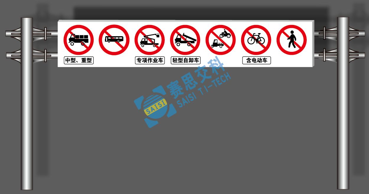 高架入口,為車輛進入高架快速路的初始點,為管理進入快速路車輛的限制類型、駕駛行為等,通常會在其入口設置組合禁令標志,以定義高架快速路的初始管理指令。采用點陣式主動發光標志,能非常醒目地提示將要進入的高架路的司機的注意自己的車型是否滿足要求?進入高架后的限制速度等。