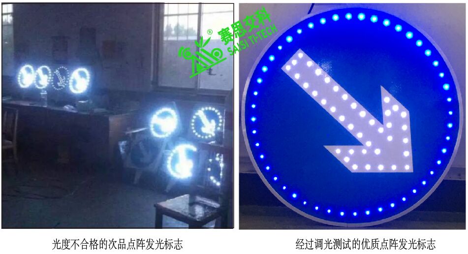 不僅是非生產業內的客戶,甚至有些從事發光標志生產不久的廠家,都想當然地認為“主動發光標志不就是能發光的標志嘛!給標志裝上LED發光管就是發光標志!”,而我要說的是:“led發光管+標志牌 ≠ 主動發光標志;能發光的標志,不一定算是主動發光標志??!”,主動發光標志作為重要的交通語言發光載體,其光源特性,不同于照明功能的路燈,也不同于警示功能的爆閃燈,其屬于光信息功能范疇,其光強要在人眼視認的舒適區間內,既不能過分追求太亮而刺眼,也不能為節省能源損耗,而過于偏暗,要達到版面亮度舒適,讓駕駛員人眼舒適地對光信息進行讀取、辨認、識別、認知,其需要根據具體版面的內容特征,和安裝位置的環境照顧,進行調光測試給出系列值,并提供動態自動修正的功能。不是毫無依據,很隨意地給標志安裝上LED發光管,就可以提供給交通工程應用。
