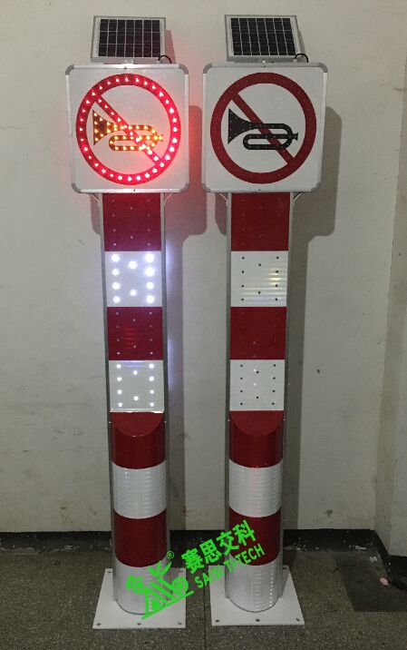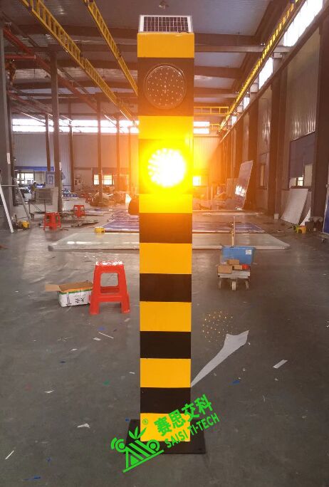 (二)高實用性。太陽能道口閃光警示柱,其通體為主動閃爍發(fā)光的LED燈珠,有效增益設(shè)備在夜間、惡略天氣中的識別率,既增強(qiáng)了警示效果,又提高了交通語言信息的遠(yuǎn)距離視認(rèn)性。其上部標(biāo)志可以為:右下行、注意行人(兒童)、機(jī)動車與非機(jī)動車的路權(quán)指引、黃閃警示燈、禁止掉頭等標(biāo)志圖案,款式多樣,能滿足多種危險場景需求。