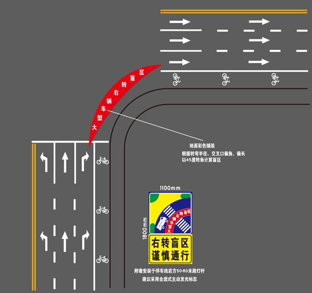 穿村鎮公路,不同于市區道路,肯定是在物流線路規劃區域內,貨車流量必然有所分布,而貨車駕駛存在一個最大的操作性隱患,即:“大貨車右輪視距盲區”,這類專題,很多專業論文及“公眾號”都有專文闡述,此處不在詳述。推薦部分發光標志版面如下: