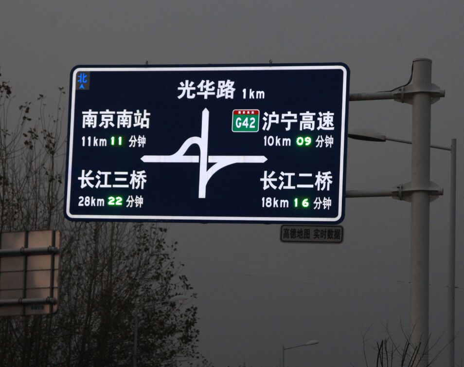 1、標(biāo)志發(fā)光路名文字部分采用半透面板式主動發(fā)光標(biāo)志技術(shù)工藝。