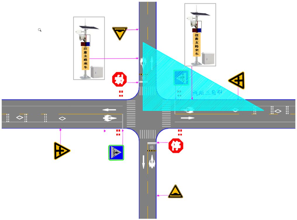 公路安全是關乎人民群眾生命財產安全的頭等大事,是經濟社會協調、健康發展的重要標志,是黨和政府對人民利益高度負責的根本要求。當前,我國公路里程數及規模不斷擴大,各類事故隱患和安全風險相互交織疊加,且形式不一,給人民群眾的安全出行、經濟發展帶來不便,如果不能有效遏制,一旦發生事故,勢必會給人民群眾的生命財產帶來損失,這就要求轉變傳統的事中、事后安全監管模式,加強事前安全監管,積極主動地排查、辨識各類公路交通安全隱患因素,統計歸整,并依據相關標準規范,科學有效應用新科技、新設備、新思路,將隱患路口、路段的危險因素消除于萌芽狀態,或在可控范圍內,保障區域交通安全。其中尤其以穿村公路叉口的隱患最為突出,本方案將著重羅列相關處理策略。