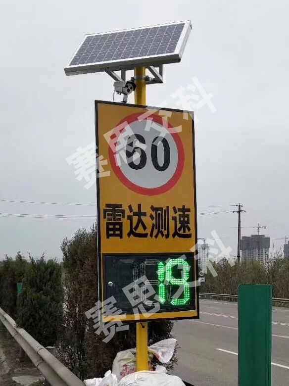 1、基本說明:該款太陽能雷達速度反饋標志,其中版面上方限速值部分,根據管理需要設置;下方設置紅、綠雙色顯示屏。另根據需要設置警示標語。