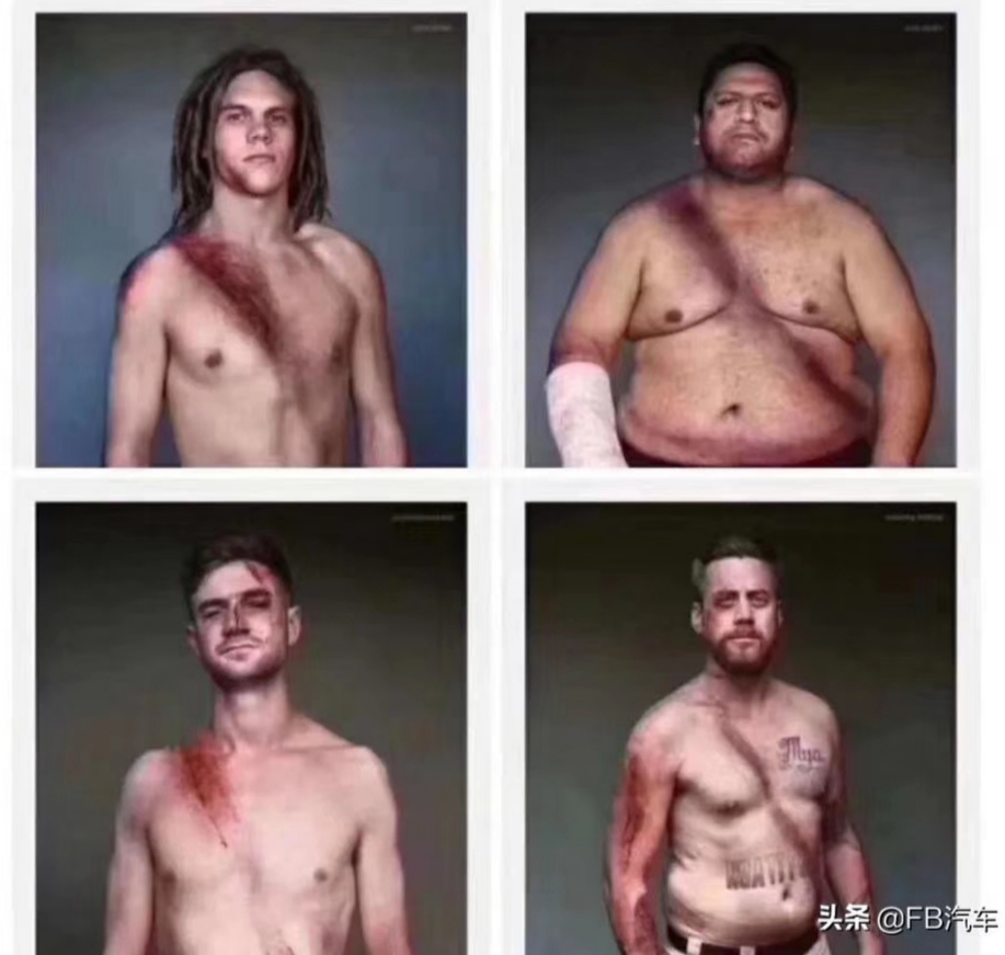 ??????? 下圖為美國交通安全部門提供的交通事故幸存者照片,這些安全帶勒痕,是事故發生后的存活印章,看起來異常觸目驚心,但他們卻因此而感激涕零,因為在交通事故發生時,他們系好了安全帶,成了幸存者,而那些沒系安全帶的,不僅沒了勒痕,也沒了生命。