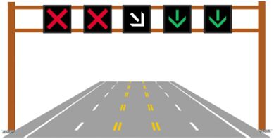 對潮汐車道進行交通管制時,除了要完善潮汐車道內(nèi)的交通標志、標線外,還應重點做好入出口段的交通組織和物理隔離,在車道方向變化前做好車道內(nèi)清空工作。國外對于可變車道的引導設(shè)施也進行了嚴格的規(guī)定,形成了一套完善的標志、標線布設(shè)規(guī)范。特別在可變車道的方向轉(zhuǎn)換過程中,需嚴格規(guī)范車輛的駕駛行為,遵守信號燈指示。例如,美國交通控制設(shè)施手冊(MUTCD)專門對可變車道標志進行了說明,可變車道主要設(shè)包括:龍門架標志、車道控制信號燈、路邊標志、路面標線及其他設(shè)施(如可移動的支座、管道、交通錐等),早期在高速公路上應用較多。